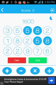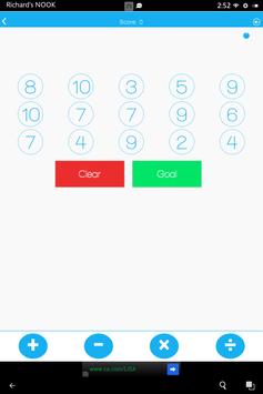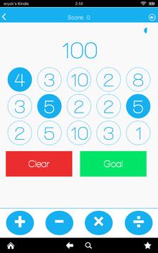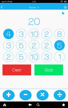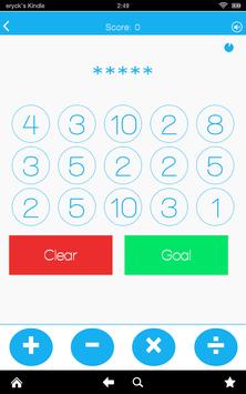 At the start of each round you are given a goal number. Add, Multiply, Subtract, or Divide a random set of numbers to reach the goal for each round in the time provided. Each number can be used only once. You earn points based on the amount of numbers you use.