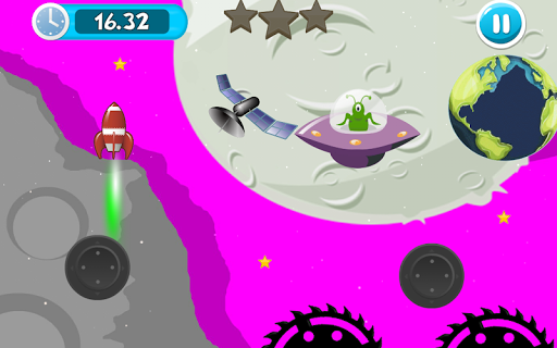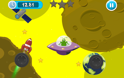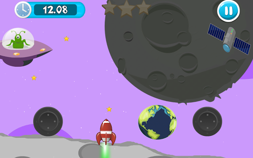 jeux de fusée survolé l'espace et les obstacle pour arriver sur la terre et récupérer les trois étoiles avant la fin du chronos