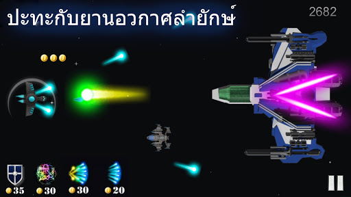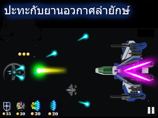 - สะสมเหรียญเพื่อปลดล็อคส่วนเสริมและยานอวกาศอื่น ๆ ในเกมยิงอวกาศ