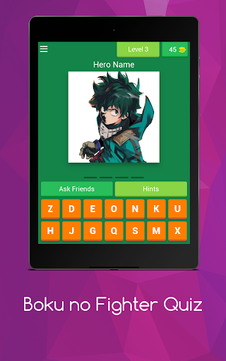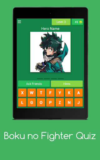 "Boku No Fighter Quiz" ซึ่งขึ้นอยู่กับ "My Hero Academia Wallpaper" เป็นเกมที่เล่นง่าย แต่ต้องใช้ความรู้ Boku ไม่มีตัวละครชื่อฮีโร่เช่น Red Imposter: Nightmare Christmas