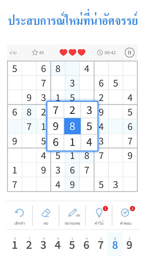 - ฟีเจอร์นี้จะทำเครื่องหมายให้กับตัวเลขที่ตรงกับคำตอบสุดท้ายของซูโดกุ เพื่อทำให้คุณสามารถดูคำตอบที่ผิดพลาดไปในขณะที่เล่นอยู่
