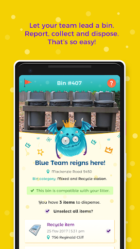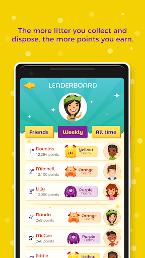 The players that have more points will be showed in the top of the Leader Board, while the team that dispose more trash on a specific Trash bin becomes the Owner of that specific Bin.