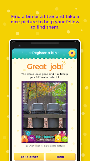 * While Hunting or Collecting, the players can also report New Trash bins, and receive points for that.