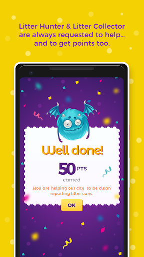 * The Collector finds litter with the help of the game map, collects it and disposes that on the nearest trash bin. This way the Collector receive points for his good actions, and share extra points with the Hunter that have reported that specific litter.