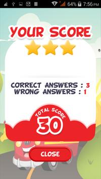 The Number Flash Cards, is probably the best to introduce a child to the fascinating world of numbers. On the first side you will see the Number with an object of the same number. On the Flip side you will see Zippy - The Red Bus Spell out the number for you. You will have numbers from 1 to 20 and then get ready for the Number Quiz, or the Number Game. The next round is where the game or quiz begins and the child has to answer the questions asked correctly. For every correct answer you get 10 points and the game goes ahead. At the end of the quiz you can see your total points in number value as well as in the stars received. A child can thus tabulate their results with little or no parents influence.