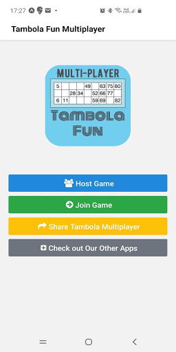Tambola Fun Multiplayer เป็นเกมออนไลน์ที่คุณสามารถเล่นกับครอบครัวและเพื่อนของคุณโดยไม่ต้องใช้กระดานและตั๋ว Tambolaคุณสามารถโฮสต์เกมใหม่และเชิญครอบครัว / เพื่อนของคุณเข้าร่วมโดยใช้รหัสเกมที่ไม่เหมือนใครตั๋วที่ไม่ซ้ำกันจะถูกสร้างขึ้นสำหรับผู้เล่นทุกคนโฮสต์ - โฮสต์ยังสามารถเลือกที่จะปิดการใช้งานรางวัลบางอย่างเช่นมุมที่ห้าหรือสิ่งอื่นใดก่อนเริ่มเกมผู้เล่นทุกคนสามารถดูกระดาน Tambola สดพร้อมตั๋วของพวกเขามันง่ายที่จะเรียกร้องรางวัลโดยคลิกที่ปุ่มและในการอ้างสิทธิ์ที่ถูกต้องรางวัลนั้นถูกปิดใช้งานสำหรับผู้ใช้รายอื่น