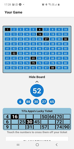 ผู้ใช้สามารถเลือกสีตั๋วของพวกเขาซึ่งตรงกับตั๋ว Real World Tambolaตัวเลือกในการหยุดการควบคุมเกมและการควบคุมความเร็วของเกมอีกครั้งที่รวมอยู่ด้วยการใช้งานง่ายและรวดเร็วมีความสนุก tambola!