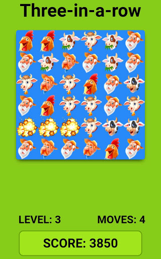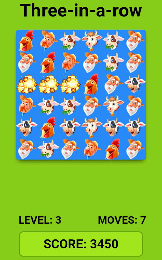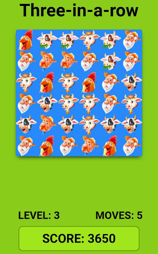 Match at least three farm animals or farmers in a row. Advance levels making the least amount of movements. Easy to play. Enjoy all time. Discover now!!!