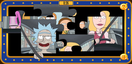 This is Rick AND Morty , the American adult animated cartoon science fiction sitcom , now for you to play in a great puzzle game.