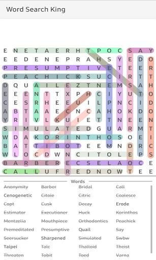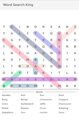 เลื่อนในภายหลังเพื่อค้นหาคำที่ซ่อนอยู่ในกริดแนวนอนแนวตั้งหรือแนวทแยงมุมและค้นหาคำนั้นมีสีสันที่แตกต่างกัน - สีที่แตกต่างกันและทำให้เสร็จเมื่อคุณพบคำที่จำเป็นทั้งหมด !!