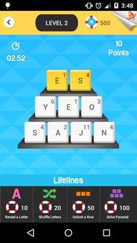 - Challenging Levels : Word Pyramids appeals to both word pros as well as novice language learners who love to learn new words. With word pyramids of just 2 rows to word pyramids of 5 rows, you will never feel short of fun.