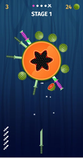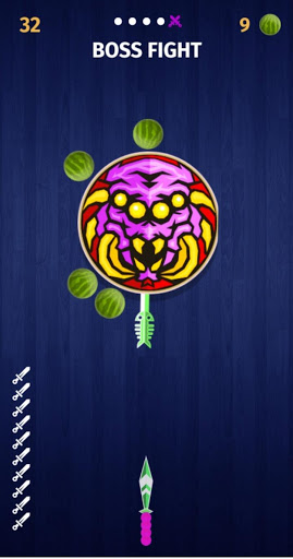 Throw the Knife & hit the target ( rotating fruit wheel )