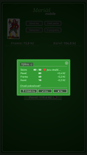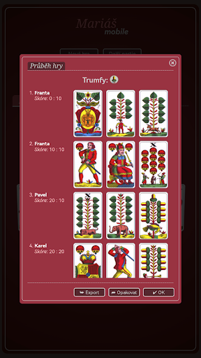 ได้รับการจัดอันดับตามจุดทรัมป์เซเว่นที่ชั่วร้ายก็อยู่เบื้องหลังจุดในขณะที่จุดถูกหักสำหรับจุดที่ถูกฆ่าดังที่ได้กล่าวไปแล้วเกม (อีกครั้ง tuti …) ไม่ได้รับการยกดังนั้นแอพนี้เหมาะอย่างยิ่งสำหรับการเริ่มต้นMariášníkyซึ่งเป็นคนทั่วไปที่มาเรียนั้นซับซ้อนเกินไป