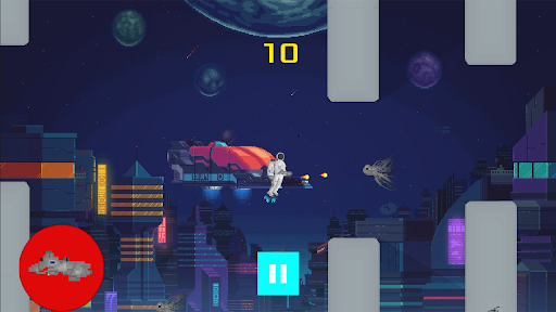 คุณสามารถแตะปุ่มปืนเพื่อให้คำสั่ง Fire Astronauta