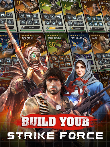 เข้าร่วม John Rambo ในการต่อสู้เพื่อครอบงำโลกกับคำสั่งเหล็ก Rambo Strike Force เป็นเกมวางแผนกลยุทธ์ MMO มือถือที่เต็มไปด้วยการตั้งค่าในอนาคตโพสต์ - สันนิษฐาน สร้างฐานของคุณรวบรวมวีรบุรุษมหากาพย์และไปทำสงครามกับอาร์เซนอลที่ยอดเยี่ยมของอาวุธ สร้างกิลด์แคมเปญหลักและเข้าร่วมกิจกรรมทั่วโลก ดื่มด่ำกับการเล่าเรื่องที่ลึกซึ้งและก้าวหน้าผ่านเรื่องราวที่น่าสนใจจากหนึ่งในแฟรนไชส์ที่ใหญ่ที่สุดตลอดกาล สนุกกับกลยุทธ์ขั้นสูงลูปการต่อสู้ 3 มิติและแคมเปญ PVE ลึก