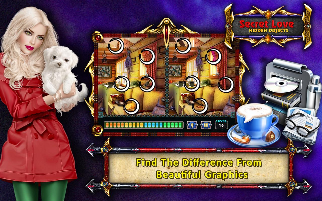 Secret Love, one of the most addictive hidden objects adventure games. Find items in pictures as fast as you can and find more than a thousand mystery hidden objects.