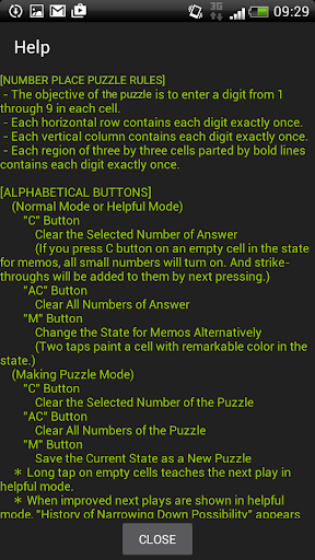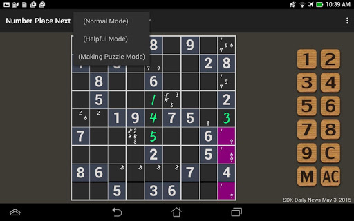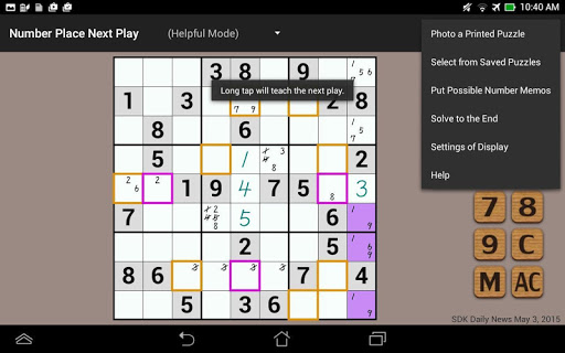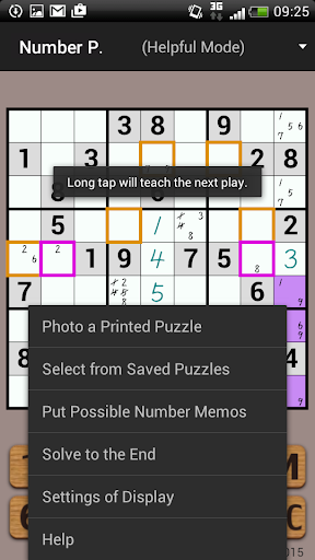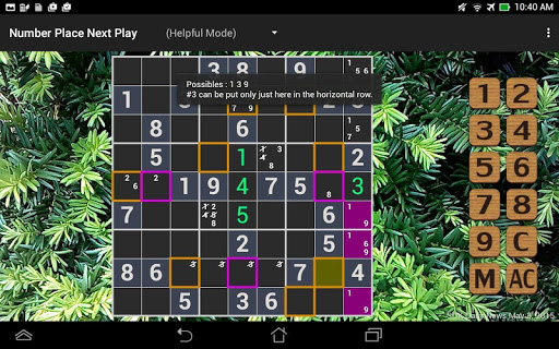 It is the mode for beginners who come to a deadlock, and you can know next plays of the Number Place puzzle in the mode.