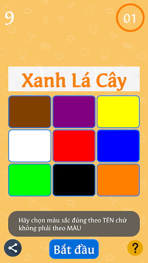 Giao diện trò chơi bố trí trông giống như một chiếc máy tính bỏ túi nhỏ. Trò chơi bắt đầu khi máy tính hiển thi tên của một màu sắc bất kỳ trong 9 màu định sẵn, thời gian trung bình khoảng 1.5s nếu người chơi không bấm vào màu hoặc bấm sai thì sẽ bị thua cuộc. Với 9 màu sắc phổ biến, người chơi cần phải tỉnh táo phán đoán màu sắc của tên gọi với màu của chữ để tránh chọn nhầm và thua cuộc.