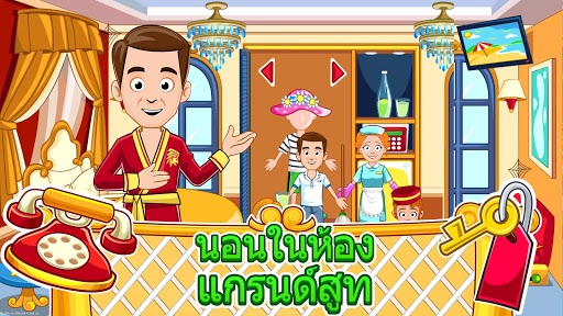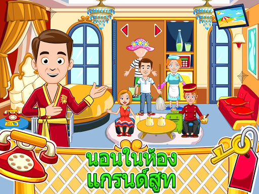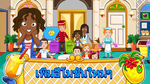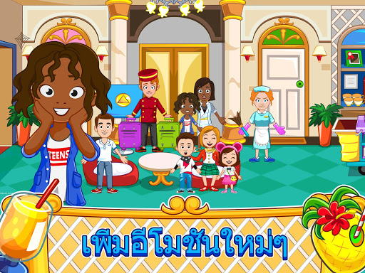โรงแรมสุดหรูแห่งใหม่ในเมืองของฉันมีความสนุกสนานและผจญภัยในทุกห้อง! ให้เบลบอยหิ้วกระเป๋าสำหรับคู่รักฮันนีมูน ชวนเด็กๆ เล่นสนุกกันในสระว่ายน้ำและที่ห้องเด็กเล่นในโรงแรม! ลิ้มลองคอกเทลผลไม้รสเลิศ เรือโจรสลัดลำใหญ่ และฟีเจอร์อีโมชันใหม่ล่าสุดของเรา ในที่สุดโรงแรมใหม่ในเมืองของฉันก็เปิดตัวแล้ว!