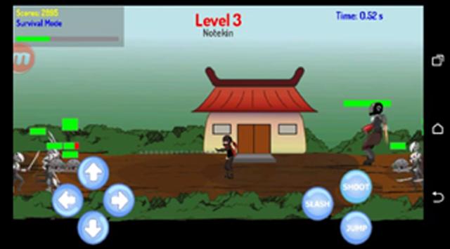 The story of Ninja Awesome involves a world conquered by robots where humans were turned into slaves to do the robots bidding. As the main character your job is to use the art of the ninja to free your fellow humans.