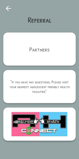 A mobile application on Adolescent Health (AH) to provide adolescents with accurate knowledge on ASRH/AHD- related information with features like quiz (fact or bluff), referral pathways, and sharing of quiz results on social media to encourage others to download and use the app.