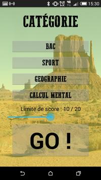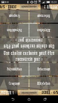 Il s'agit d'un jeu de réflexion traitant 4 sujets. Vous pourrez vous tester sur vos connaissances du programme de terminale, sur du calcul mental, de la géographie mais aussi du sport. Ce jeu se joue à 2 personnes et vous pourrez choisir le score à atteindre pour gagner la partie. A chaque tour, les 2 utilisateurs se voient proposer une question avec 4 réponses possibles. Le premier qui appuie sur la bonne réponse gagne un point, celui qui appuie sur la mauvaise réponse perd un point. Une fois la partie terminée, vous pouvez prendre votre revanche pour connaitre de mieux en mieux le programme de terminale et travailler encore plus vos neurones !