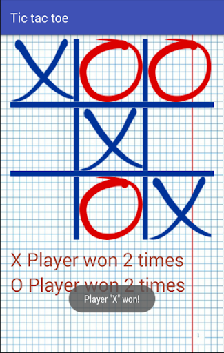 2. Jesteś X, przyjaciela (lub komputera w tym przypadku) oznacza O. Gracze na zmianę układają swoje ślady w pustych placów.