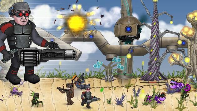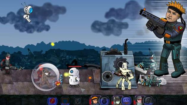 It is the Humans versus an Army of Robots that fight. An Army of Robots that Brutally Attack anything that poses a threat to their land. Attack them before they Attack you just do not stop Advancing. Keep going to Discover and Upgrade Weapons. Command the Squad through intense situations, use Tactics for impenetrable Formations, and Unleash Skills during stressful Combat, in this Non Stop Action Mode. Reach Checkpoints in order to Regroup and Refocus, before going back to the Battlefield. Be cautious because there are more than 40 Robots including Bosses like, Mr. Robot, that will destroy the Humans in various ways that will surely Surprise.