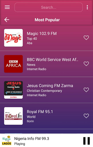The best collection of online radios and FM radios from Niger. More than 15 radio stations from Niger. This app is loaded with favourites list, 6 color themes, alarm, sleep timer to auto shutdown FM after a time, sharing with friends, in-built volume control, background playing, retaining last played station on start.