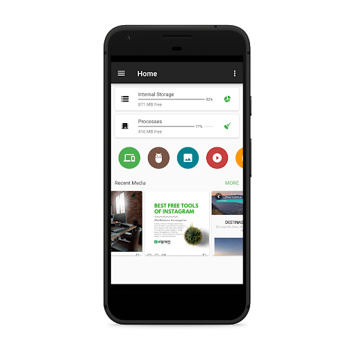Simple, maliit na file manager (lamang 2-3 MB), mabilis at mahusay at isa sa mga pinakamahusay na apps ng file manager sa Google Play Store. Sinusuportahan ang RTL at nagpapakita ng laki ng folder sa buong imbakan. Ang File Manager ay dinisenyo para sa lahat ng mga Android device kabilang ang Mobile, Phablet, Tablet at Android TV. Ito ay ganap na dinisenyo sa mga gabay sa materyal ng Google. Sinusuportahan ang lahat ng mga bersyon ng Android ng Jellybean, KitKat, Marshmallow, Nougat, at Oreo.