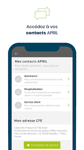 Hindi alintana ang iyong bansa sa expatriation, ang madaling aplikasyon ng pag -angkin mula sa Abril International ay nagbibigay -daan sa iyo upang madaling maipadala ang iyong mga kahilingan para sa muling pagbabayad ng mga gastos sa kalusugan. Ang iyong mga invoice at iba pang mga sumusuporta sa dokumento.