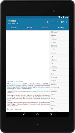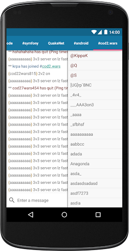 If you want to report some issues or bugs, please use our support page: http://www.androirc.com/support. You can also find all latest news on our website, http://www.androirc.com