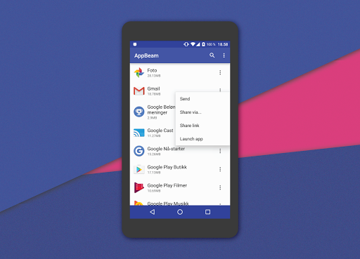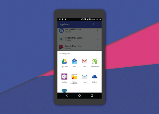 Gamit ang app na ito, maaari kang magpadala ng alinman sa app na gusto mo mula sa imbakan ng iyong telepono, sa iyong mga kaibigan, nang walang koneksyon sa WiFi.Ang default na pagkilos ay ang paggamit ng Android Beam, na gumagamit ng NFC at Bluetooth para sa file transfer.Gayunpaman, kung pareho kang magkaroon ng koneksyon sa internet, maaari mong gamitin ang mga third party na apps, tulad ng Gmail at Google Drive, upang ibahagi o iimbak ang APK file.Maaari mo ring madaling ibahagi ang link ng Play Store ng app sa pamamagitan ng pagpili ng "Ibahagi Link".