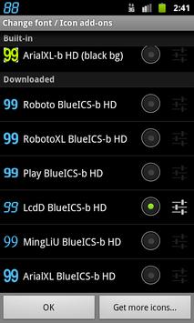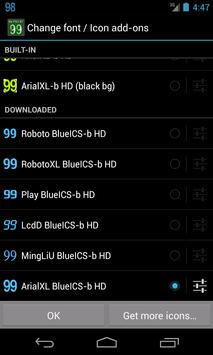 For Android 3.x/4.x users who wish to have the brightest colors possible on their dim status bars, look for our HD add-ons with “b” after the font name. Download HD add-ons within Battery Notifier Pro BT or search for "bnbt" in your browser at Google Play.