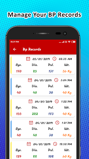 BP checker talaarawan, maximum na presyon ng BP at pinakamaliit na presyon ng dugo.