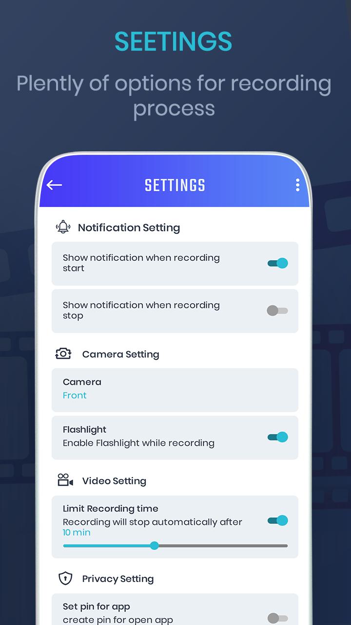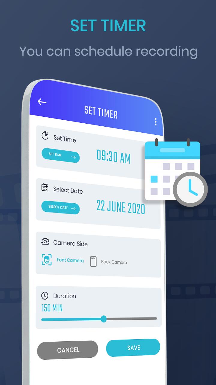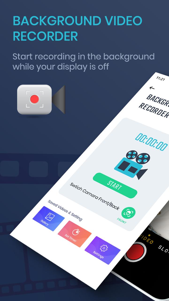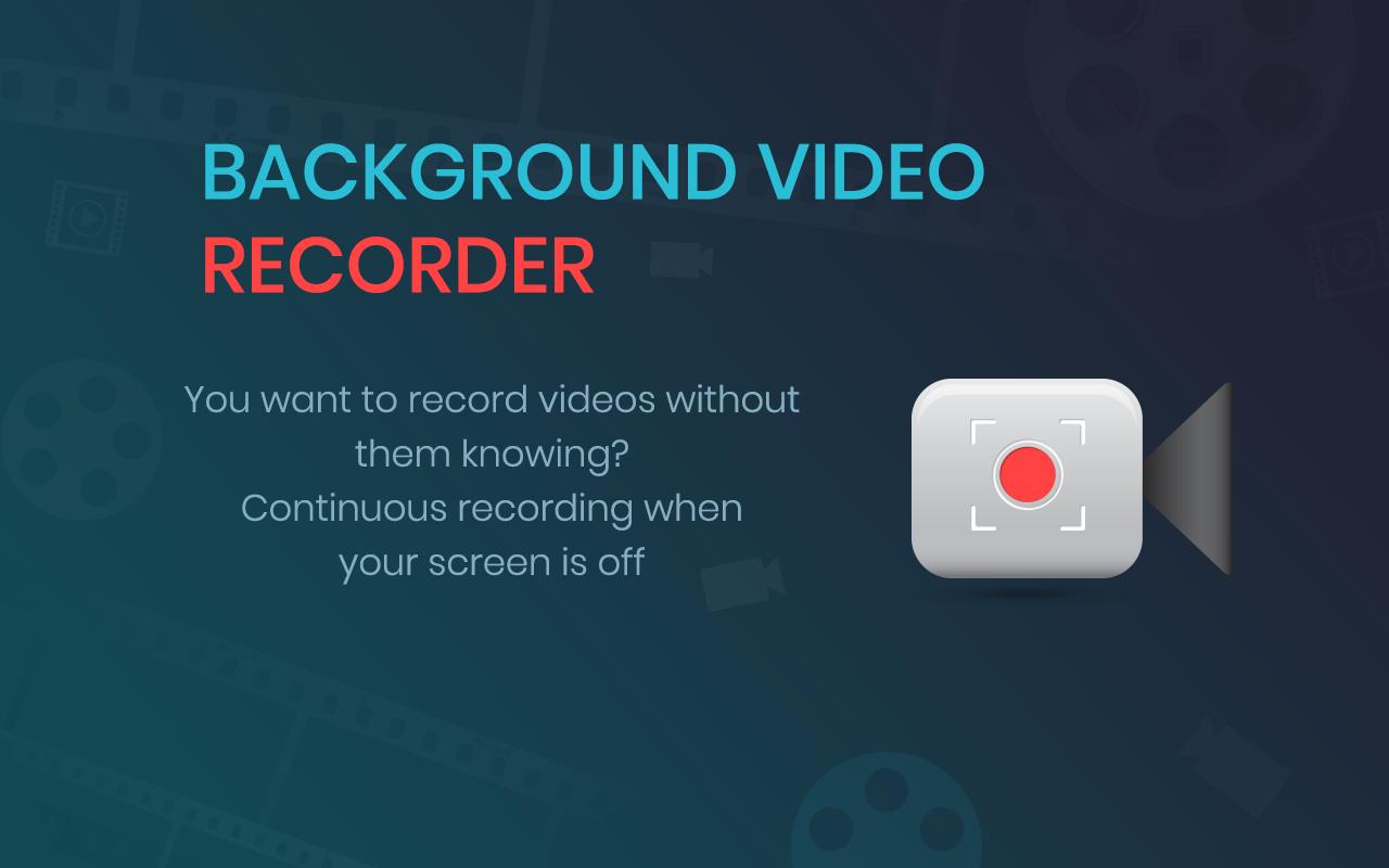 Background Video Recorder app is a Personal camera app that can record video/voice in the background automatic. It helps you to record video by one click easily with the option to enable/disable camera shutter sounds and camera previews. It can continue record video and voice even screen is off and you can scheduled recording on the settings page.