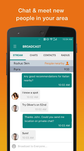 Broadcast ay isa sa mga pinakamahusay at pinakabagong meeting chat, messaging at panlipunan Apps. Mayroong isang buong bagong mundo out doon, naghihintay lamang na ginalugad. Kaya i-download ang app ngayon!