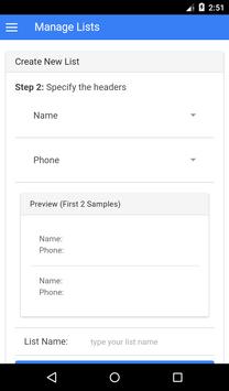 ● Supports EXCEL files for creating list: Create your list using EXCEL, use at lest 2 columns with “Name” & “Number” and save it in *.CSV format. Then transfer the file to your phone and select the file using app. Then it’ll show the preview of the each contact.