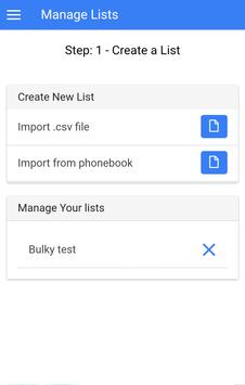 Bulky™ is the world's first free bulk SMS sending app with several unbelievable features. You can create list using EXCEL file (*.csv only) or import from your contacts, save them for future use, set variables for name and see the current progress.