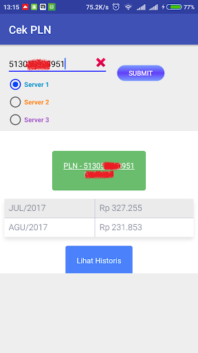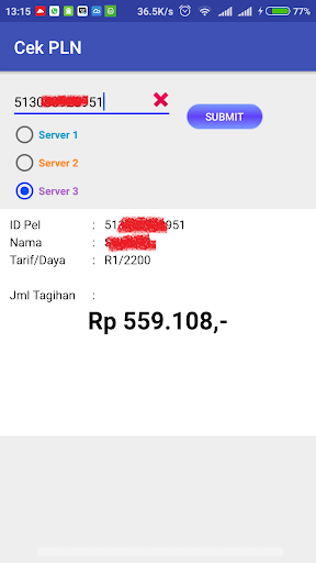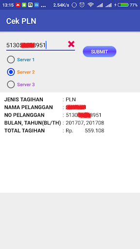 - Pansin !!Sa aming 1 server ay karaniwang cutiff sa 00.00 - 02.00 at awtomatikong application ay hindi tumugon sa mga kahilingan mula sa Android application suriin ang bill.Kung ang isang babala ay lumilitaw na "hindi nakakonekta sa server", mangyaring subukan ang isa pang server.