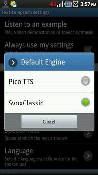 2. Activate SvoxClassic at the bottom of the screen, then select SvoxClassic as the Default Engine.