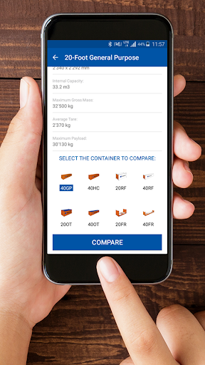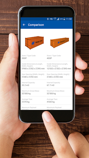 Bukod pa rito mayroon kang posibilidad na ihambing ang mga panukala ng dalawang napiling mga lalagyan at ang posibilidad na mag-swipe pakaliwa / pakanan upang lumipat sa nakaraang / susunod na item.