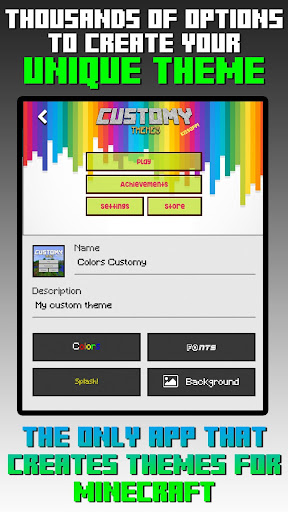 Lumikha ng iyong sariling mga tema para sa Minecraft Pe.> Gawin ang iyong Minecraft Pocket Edition na natatangi at eksklusibo.