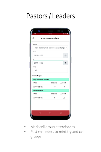 2.Ang mga pinuno ng Cell Group upang markahan at tingnan ang pagdalo, mag -post ng paalala sa ministeryo at mga grupo ng cell.