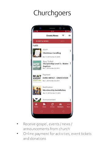 4.Ang mga Churchgoers ay maaaring gumawa ng online na pagpaparehistro ng kaganapan at pagbabayad para sa mga aktibidad sa simbahan.