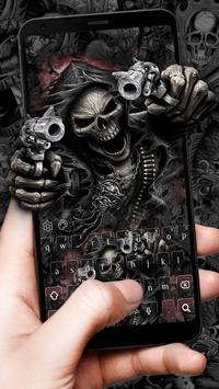 ★★★ Devil Death Skull Gun Keyboard Theme brings regular typing to life. Devil Death Skeleton Skull Typewriter theme is a keyboard thema which has dark black skeleton holding gun in hand is black Death wallpapers and transparent horror keyboard theme app icons.
