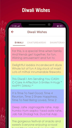 Ang Diwali ay ang pagdiriwang ng mga ilaw. Sa India, ipinagdiriwang namin ang pagdiriwang ng Diwali sa pamamagitan ng pagsabog ng mga paputok, pag -iilaw ng mga kandila at diyas sa bahay, pinalamutian ang bahay na may rangoli. Nagsasagawa rin kami ng mga kaugalian sa relihiyon na kinabibilangan ng diyosa na si Lakshmi, Lord Ganesha at Lord Kuber Pooja sa Araw ng Diwali. Magpadala ng magagandang pagbati sa okasyon ng Diwali 2022. Maaari ka ring lumikha ng iyong sariling pasadyang kard ng pagbati mula sa application. Ito ay ganap na libre at maaari mong ibahagi ang mga pagbati sa Diwali at mga sticker ng Diwali sa iyong mga social network, i.e WhatsApp, Facebook, Google, at higit na naka -install sa iyong aparato. Ipakita at ibahagi ang iyong pag -ibig sa pamamagitan ng pagpapadala ng mga kagustuhan sa Diwali sa iyong mga mahal. Magkaroon ng isang kahanga -hangang Diwali at Bagong Taon! Pinakamahusay na karanasan para sa iyo.