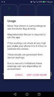 Protect your privacy with the NEW most Advanced spy bug finder and detector with which you can detect microphone, detect hidden camera and bug or similar surveillance device which may exist in the room or in your house/ office and you have no idea about it. Easy to use app to detect surveillance device for Free