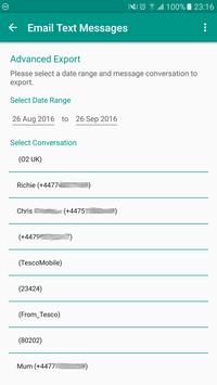 Simply select a conversation to export and the messages within that conversation are saved to a text file.