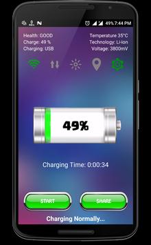 As you know, Android Platform allows multi-tasking with ease. Some apps just keep running on background and take resources of phone, keep eating your battery in the background. So With this app, you can simply kill all background tasks with just one click by hit start button and it will help you to charge your Phone as fast upto 6x. Enjoy Rapid charge technology on your Phone right now.